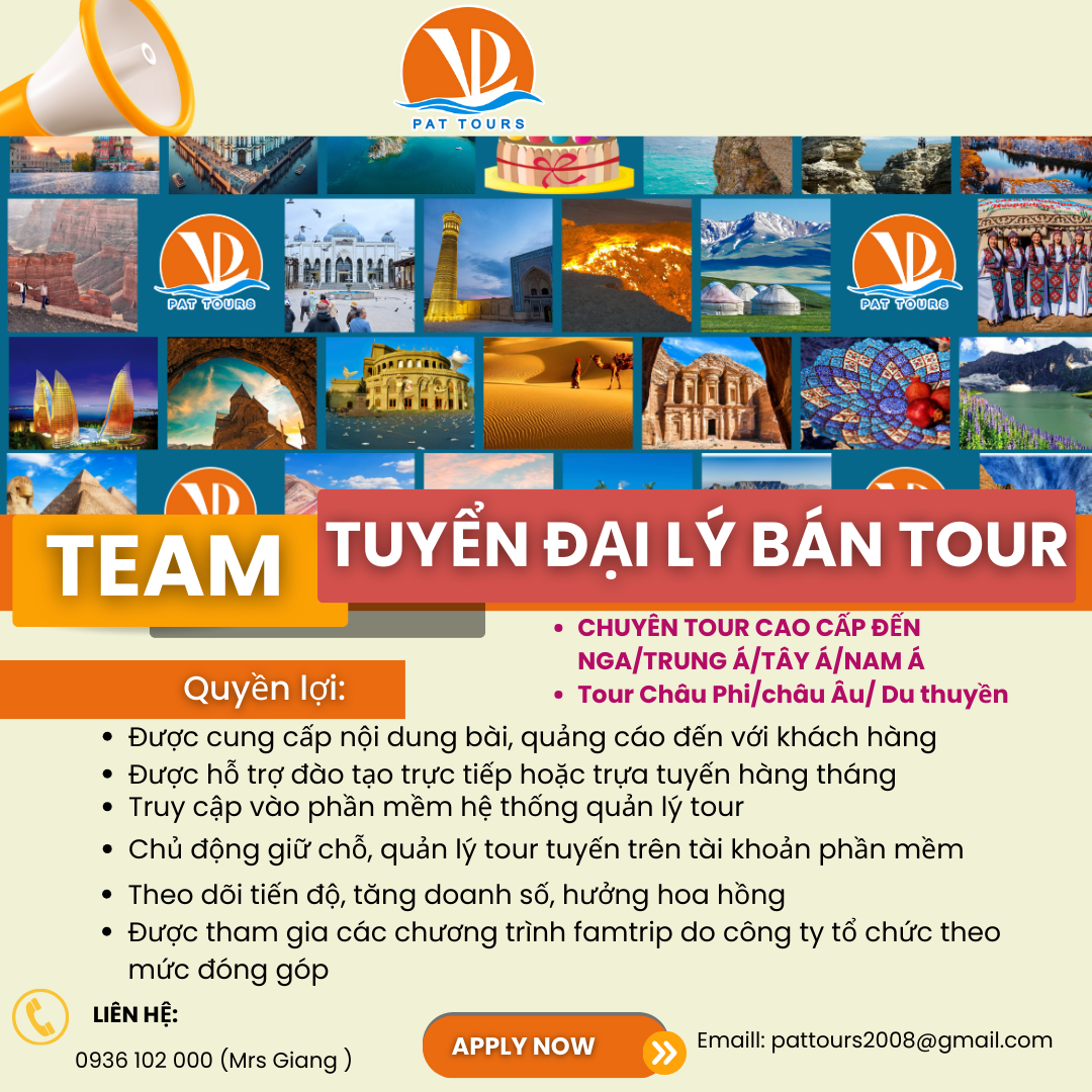Với sứ mệnh đưa khách Việt đến khắp 7 châu bằng những hành trình tinh tuyển, dịch vụ đẳng cấp và trải nghiệm độc bản – PATTOURS đang mở rộng đội ngũ nhân sự và đối tác để cùng viết tiếp những trang vàng rực rỡ cho người Việt du ngoạn thế giới.