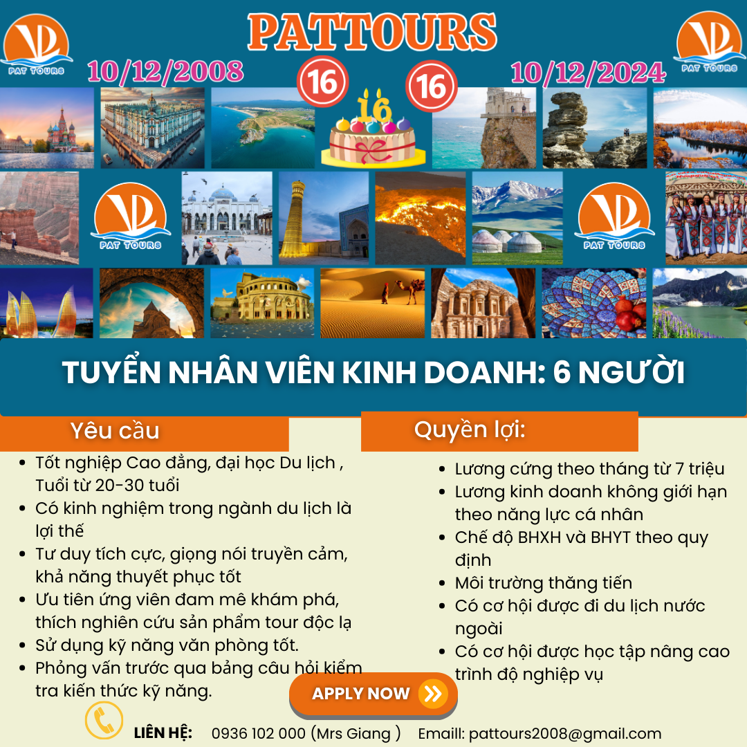 🌍 PATTOURS TUYỂN DỤNG TOÀN QUỐC – HỢP TÁC BỀN VỮNG – LAN TỎA HÀNH TRÌNH TOÀN CẦU