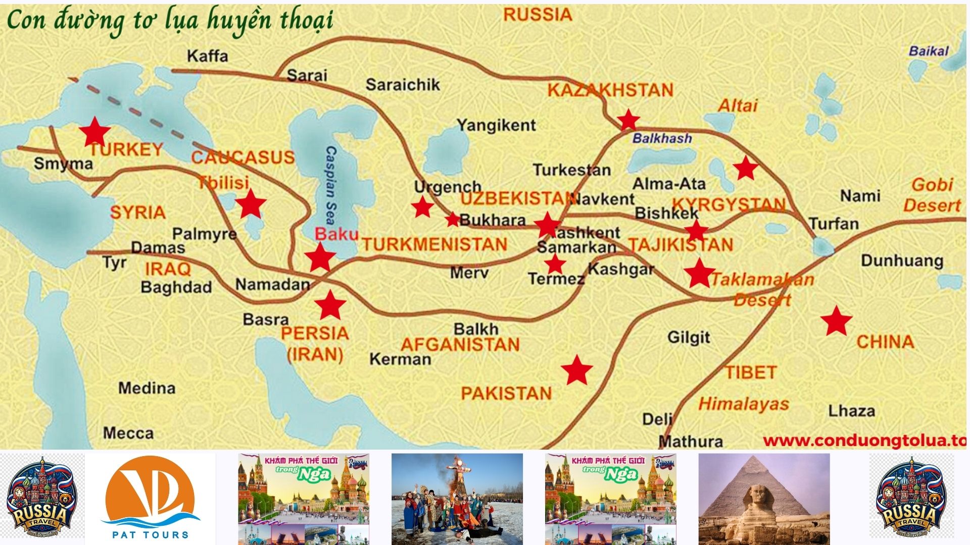 Với hành trình 18 năm kiến tạo những dấu ấn viễn chinh khắp 7 châu lục, PATTOURS & Russia Travel tự hào là đơn vị dẫn lối Du khách chinh phục những vùng đất huyền thoại: từ Nước Nga vĩ đại, miền Trung Á bí ẩn, đến Tây Á kỳ vĩ và Nam Á rực rỡ sắc màu, đến du thuyền 7 châu.